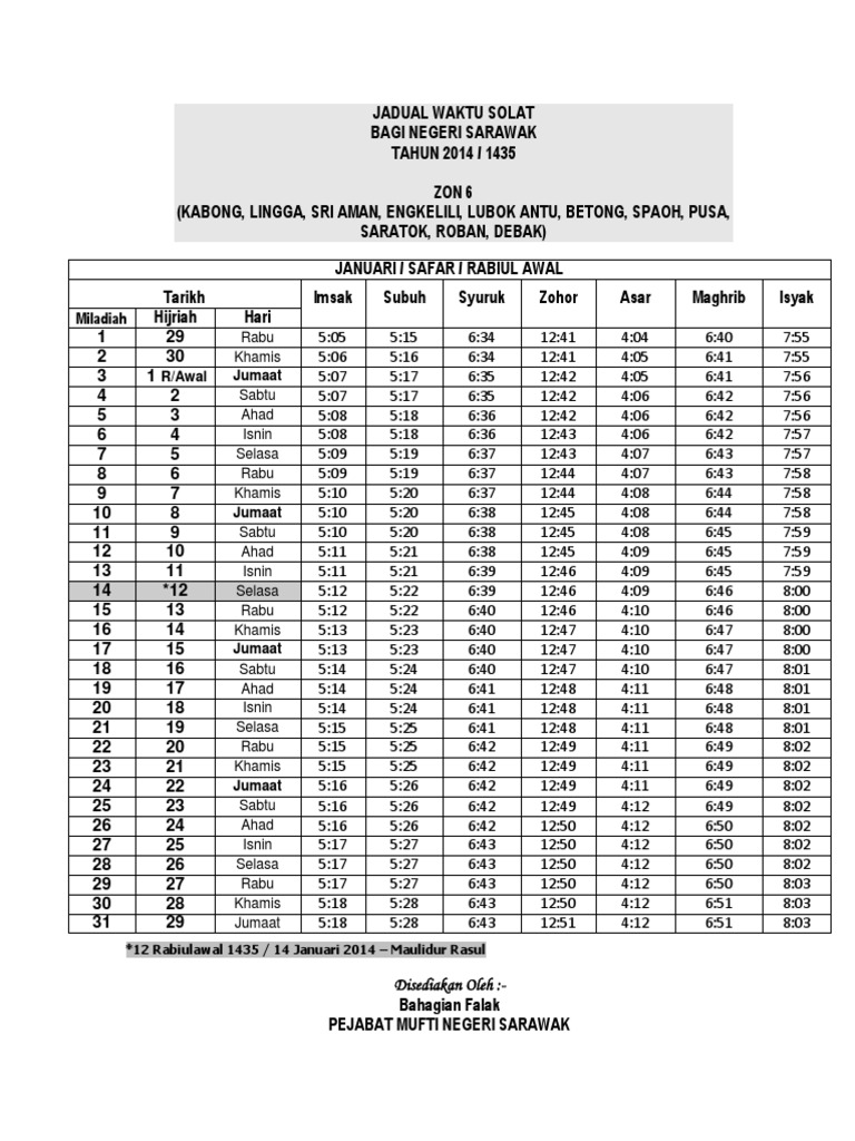 Waktu Solat Kuching Bau Lundu Sematan 2014 Pdf