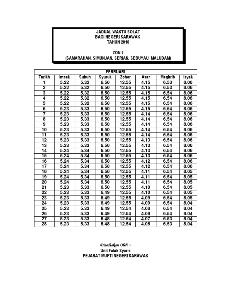 Jadual Solat Zon 8 Kuching Bau Lundu Sematan Pdf